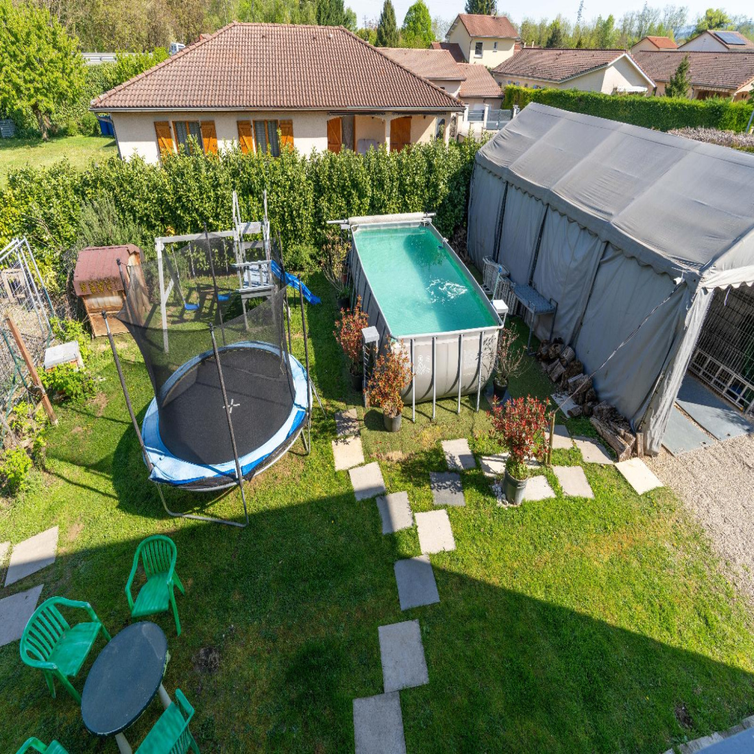 SAINT DENIS EN BUGEY - SAINT DENIS EN BUGEY 01500, à vendre Maison avec fort potentiel + grand hangar Idéal famille ou artisan Découvrez cette maison surélevée offrant de nombreuses possibilités, idéale pour une famille ou un projet avec revenu locatif. Elle dispose d'un sous-sol complet entièrement aménageable, avec la possibilité de créer facilement un studio indépendant (idéal location ou espace pour un proche). Déjà équipée, d'une douche, d'une buanderie et de grands espaces de rangements. La maison se compose à l'étage : Une belle pièce de vie lumineuse exposé sud ouest avec poêle à bois et climatisation Une cuisine séparée 3 chambres confortables Une salle d'eau avec douche WC indépendant À l'extérieur, vous profiterez d'un terrain agréable avec : Une terrasse aménagée avec jacuzzi, parfaite pour vos soirées d'hiver comme d'été Un espace barnum d'environ 30m² Un coin jeux pour enfants + piscine hors sol Les + : Adoucisseur d'eau Grand hangar d'environ 68 m², idéal pour artisan, stockage ou activité professionnelle Fort potentiel d'aménagement (studio indépendant, espace pro, etc.) Ce bien allie confort de vie et opportunités (familiales ou professionnelles). Contact Delphine CLESEV IMMOBILIER CHAMPAGNE 06.23.45.85.06 HONORAIRE CHARGE VENDEUR. Honoraires à la charge du vendeur.